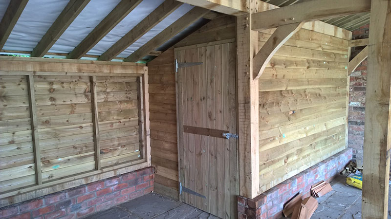 This is the back of two bay (The Cambridgeshire), with enclosed log store, half of which has been adapted into a small W/C. This was build in Lincolnshire.With standard cladding.